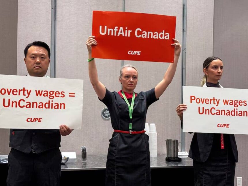 تتصاعد التوترات في كندا مع اقتراب موعد إضراب محتمل لمضيفي الطيران النقابيين في شركة «إير كندا»، أكبر شركة طيران في البلاد، إذ تفصلنا ساعات قليلة عن الموعد النهائي المحدد عند الساعة 1:00 صباحاً بتوقيت شرق الولايات المتحدة يوم السبت.
