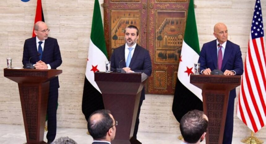 وكشف وزير الخارجية السوري أسعد الشيباني في مؤتمر صحفي مشترك مع نائب رئيس الوزراء وزير الخارجية الأردني والمبعوث الأمريكي خريطة طريق بشأن السويداء تتضمن سبع نقاط بدعم من الأردن وأمريكا.