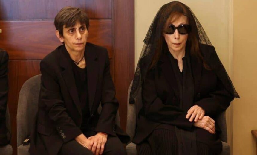 توكأت «سيدة الصباح» على ابنتها الصغرى ريما الرحباني، من زوجها الموسيقار الراحل عاصي الرحباني.