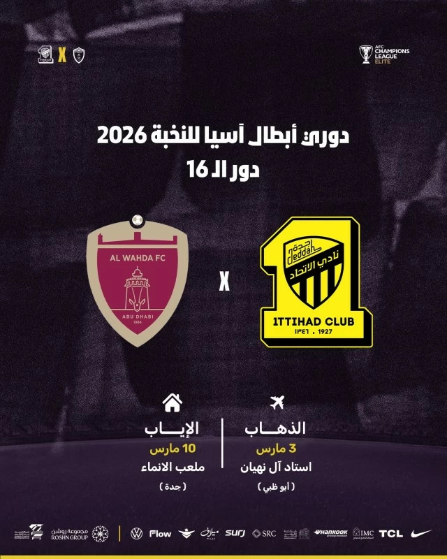 Meanwhile, Saudi Arabia’s Al-Ahli, in second place, will face Al-Duhail on March 2, with the return leg on March 9 at the Al-Inma Stadium in King Abdullah City, Jeddah. Al-Ahli aims to defend the title it won last season, while Al-Duhail seeks to win the cup for the first time. As for Al-Ittihad, the third Saudi club to qualify, it finished its league stage strongly after a start that saw two losses. The team will face Al-Wahda in the first leg on March 3, with the return leg on March 10 at the Al-Inma Stadium in King Abdullah City, Jeddah.