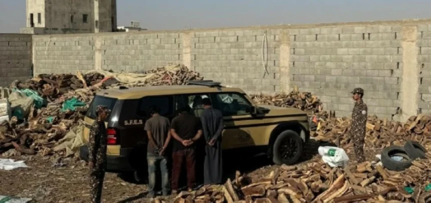 The Special Forces for Environmental Security apprehended (3) residents of Yemeni nationality for violating environmental regulations by storing (184) cubic meters of local firewood in the Riyadh area. Legal procedures were applied against them, and the seized quantities were handed over to the relevant authority.