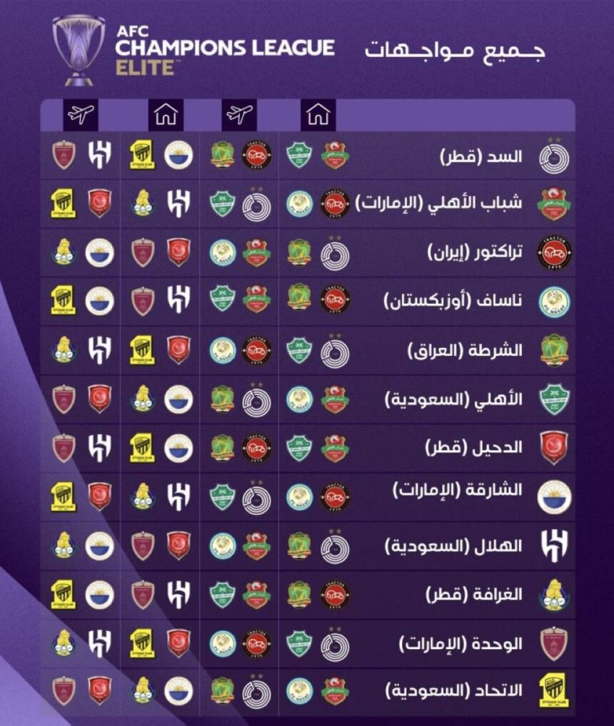 فيما سيخوض فريق الاتحاد (بطل دوي روشن للمحترفين) أول مواجهاته أمام شباب الأهلي، وناساف الأوزبكي على أرضه وبين جمهوره في جدة، ثم يطير لملاقاة السد القطري والشرطة العراقي، قبل أن يواجه الشارقة الإماراتي، والغرافة القطري، في معقل النمور، ويختتم مشواره في هذا الدور بمواجهة الدحيل القطري والوحدة الإماراتي خارج ملعبه.