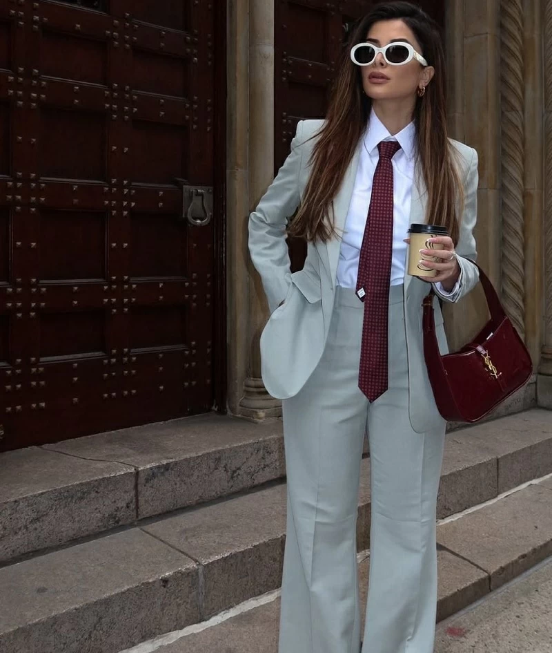 لم تعد البدلة الرسمية محصورة في الإطلالات الصارمة، بل يمكن كسر حدّتها بسهولة عبر تنسيقها مع الجينز لأسلوب عملي وأنيق. بليزر بقصة واضحة مع جينز مستقيم أو واسع قليلًا يخلق توازنًا ذكيًا بين الرسمية والراحة، خصوصًا مع تيشيرت بسيط أو قميص مفتوح بشكل خفيف.