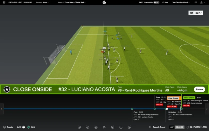 The displayed examples included an attacking shot from Fluminense where player René appeared to be ahead of defender Alex Telles with his right foot, who was determined to be in an offside position. In another shot, Luciano Acosta was shown in a legal position, benefiting from the positioning of defender Alexander Barbosa who kept him in play. In both cases, the technology demonstrated that referee Rafael Klein’s decisions matched the system’s digital readings.