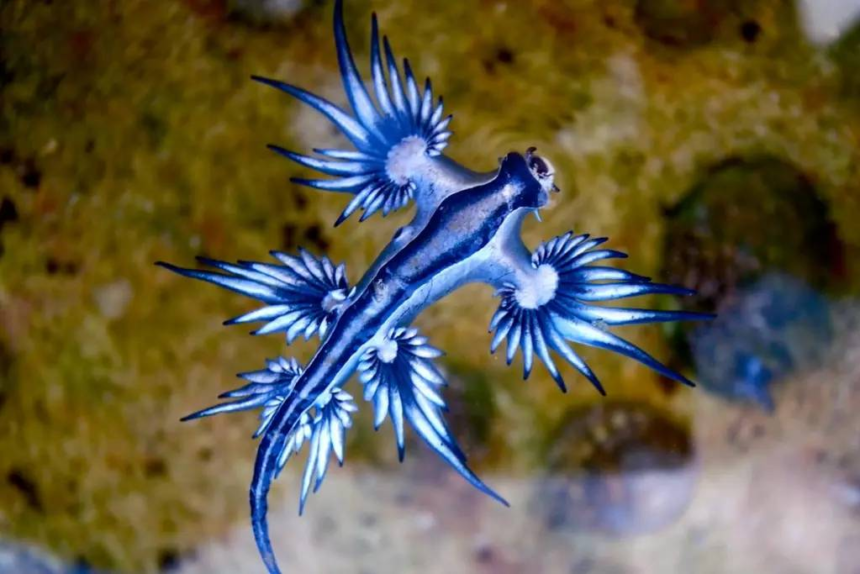يتميز الكائن البحري المعروف علميًا باسم Glaucus atlanticus بجسم أزرق لامع وزعانف تشبه الأجنحة، لكنه يمتص السم من فرائسه ويخزّنه بتركيز أعلى، ما يجعله قادرًا على إحداث ألم شديد وغثيان وتهيّج جلدي وحتى ردود فعل تحسسية خطيرة لدى البشر.