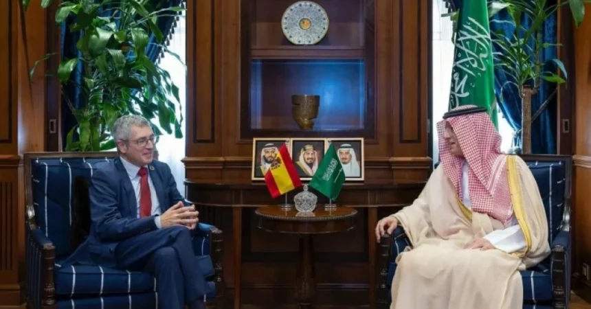 استقبل وزير الدولة للشؤون الخارجية عضو مجلس الوزراء ومبعوث شؤون المناخ عادل بن أحمد الجبير، في مقر الوزارة بالرياض اليوم، وزير الدولة الإسباني لشؤون البيئة هوغوموران فرنانديز.