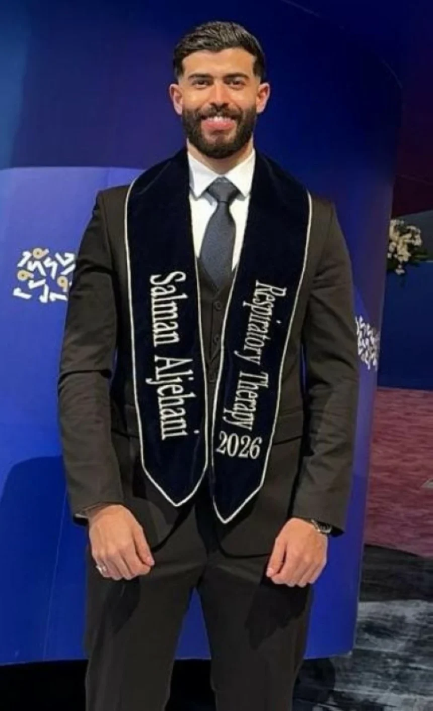 حصل الشاب سلمان بن تركي الجهني على لقب أخصائي علاج تنفسي، عقب تخرجه في إحدى الكليات الطبية الخاصة بجدة، متوجاً سنوات من الجد والاجتهاد في مسيرته العلمية.