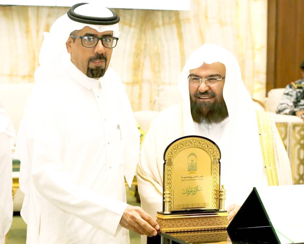 وتسلم الزميل عبدالله الدهاس (المحرر بمكتب مكة المكرمة)، درعاً تذكارية من الدكتور السديس، خلال الحفل الختامي لتكريم الجهات المشاركة في أعمال موسم الحج.