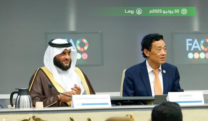 وأكّد الوكيل المساعد للثروة الحيوانية والسمكية بوزارة البيئة الدكتور علي الشيخي، في كلمته في الحفل، أن المملكة حرصت خلال رئاستها على استثمار المناسبة لتعزيز حضور الإبل في الوعي العالمي؛ بوصفها مورداً غذائيّاً واقتصاديّاً وثقافيّاً مهمّاً في حياة الشعوب، يستحق العناية والبحث والتطوير. مشيراً إلى أن حضور المملكة في الملفات الدولية الزراعية لم يكن مجرّد حضور؛ بل كان قيادةً وريادة، سواء من خلال رئاستها للسنة الدولية لمصائد الأسماك وتربية الأحياء المائية، أو من خلال دورها المحوري في السنة الدولية للإبليات 2024م.