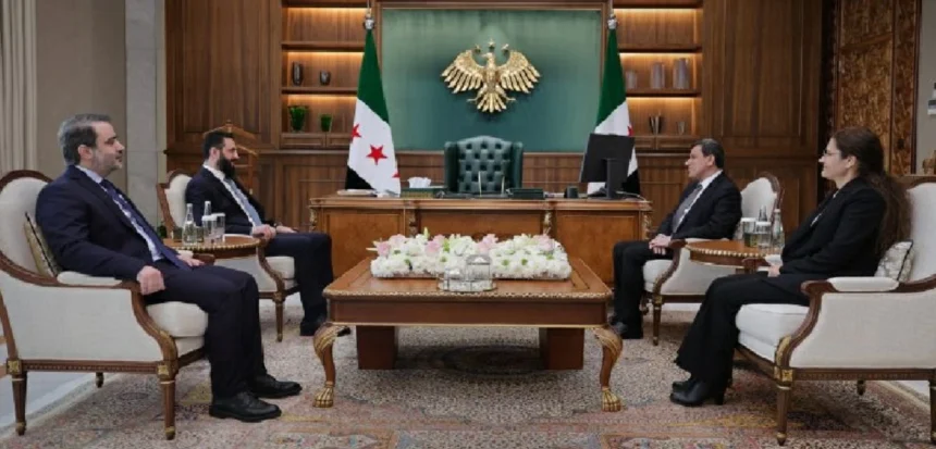 استقبل الرئيس السوري أحمد الشرع، اليوم (الخميس)، قائد قوات سورية الديمقراطية (قسد) مظلوم عبدي، والقيادية في التنظيم إلهام أحمد، لبحث استكمال عملية دمج القوات والمؤسسات ضمن مؤسسات الدولة، وفقاً لما ذكرته وكالة الأنباء السورية «سانا».