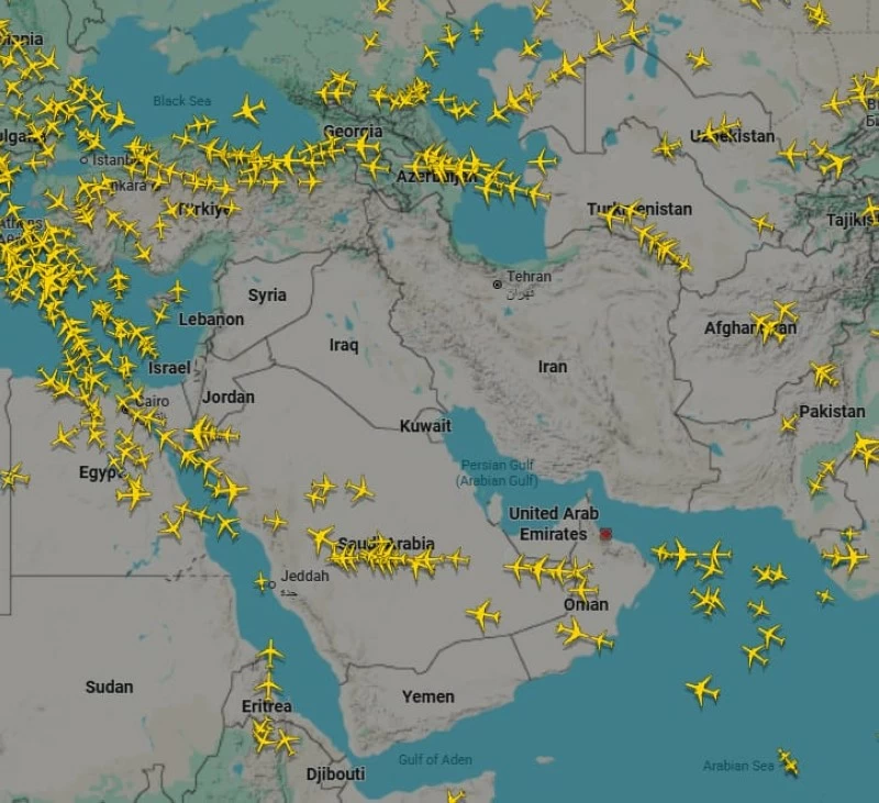 وأظهرت بيانات موقع Flightradar24 تحوّل مسارات الطائرات بعيداً عن مناطق التوتر.