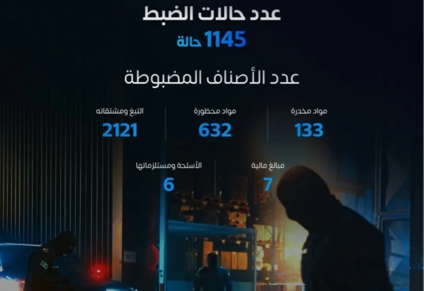 أعلنت هيئة الزكاة والضريبة والجمارك ضبط 1,145 حالة مخالفة خلال أسبوع واحد، ضمن جهودها المتواصلة لحماية أمن المجتمع والاقتصاد الوطني، ومكافحة محاولات التهريب عبر مختلف المنافذ.وأوضحت الضريبة والجمارك أن المضبوطات تنوعت بين 2,121 صنفاً من التبغ ومشتقاته، و632 مادة محظورة، و133 مادة مخدرة، إضافة إلى ضبط 6 أسلحة ومستلزماتها، و7 مبالغ مالية، في إطار الرقابة المشددة والتكامل الأمني في المنافذ البرية والبحرية والجوية.وأكدت الهيئة استمرارها في تعزيز إجراءات الرقابة الجمركية، ورفع كفاءة أنظمة التفتيش، بما يسهم في إحباط محاولات التهريب وحماية المجتمع من المواد الممنوعة والمخالفات الجمركية.ودعت هيئة الزكاة والضريبة والجمارك الجميع إلى الإسهام في دعم جهودها عبر الإبلاغ عن أي ممارسات مشبوهة من خلال قنوات التبليغ الرسمية.