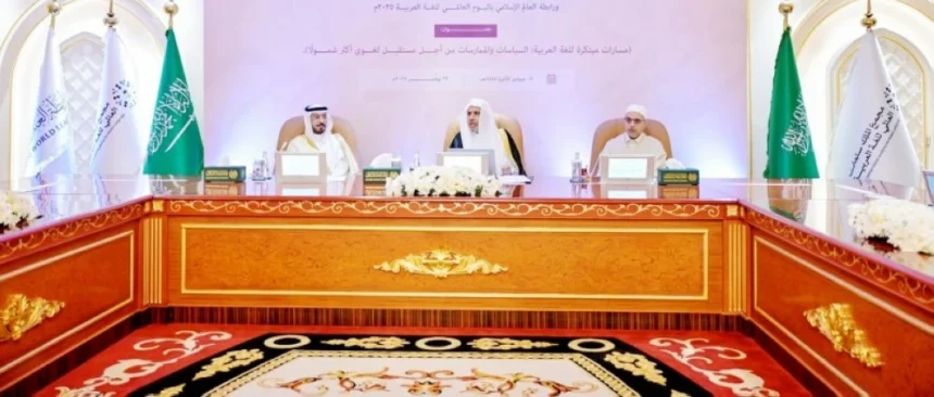 The first events celebrating the International Day of the Arabic Language were concluded yesterday (Sunday), organized by the King Salman Global Center for the Arabic Language and the Muslim World League in Mecca, with the presence of the Secretary-General of the Muslim World League and President of the Association of Muslim Scholars, Dr. Muhammad Abdul Karim Al-Issa, and the Secretary-General of the King Salman Global Center for the Arabic Language, Dr. Abdullah Saleh Al-Washmi, along with a select group of scholars, heads of delegations, and several senior specialists and those interested in linguistic and cultural affairs.