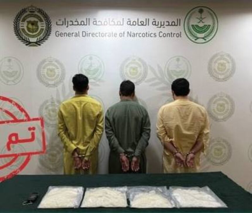 قبضت المديرية العامة لمكافحة المخدرات على (3) مقيمين من الجنسية الباكستانية بالمنطقة الشرقية لترويجهم (2.8) كيلوغرام من مادة الميثامفيتامين المخدر (الشبو)، وأوقفوا واتخذت الإجراءات النظامية بحقهم، وأحيلوا إلى النيابة العامة.