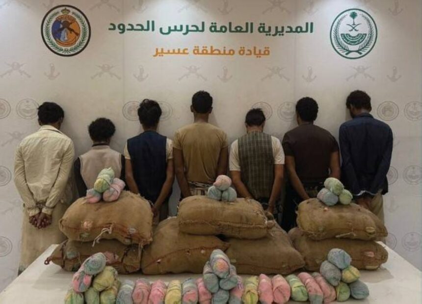 قبضت الدوريات البرية لحرس الحدود في قطاع الربوعة بمنطقة عسير على (7) مخالفين لنظام أمن الحدود من الجنسية اليمنية، لتهريبهم (140) كيلوغراماً من نبات القات المخدر، وجرى استكمال الإجراءات النظامية الأولية بحقهم، وتسليمهم والمضبوطات لجهة الاختصاص.