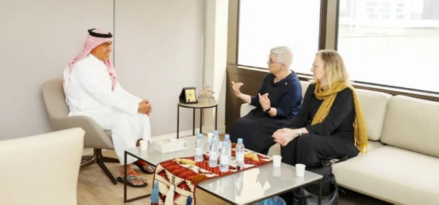 The CEO of the Libraries Authority, Dr. Abdulrahman Al-Asim, met at the authority’s headquarters with the Secretary-General of the International Federation of Library Associations and Institutions (IFLA), Sharon Mimes, and the President of the Federation, Leslie Weir, during an official visit aimed at discussing the current state of the library sector and exploring opportunities for joint cooperation.