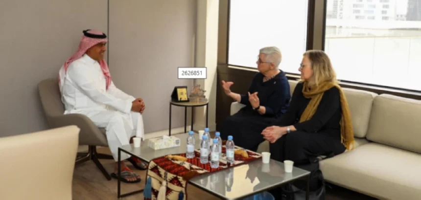 The CEO of the Libraries Authority, Dr. Abdulrahman Al-Asim, met at the Authority’s headquarters with the Secretary-General of the International Federation of Library Associations and Institutions (IFLA), Sharon Meems, and the President of the Federation, Leslie Weir, during an official visit aimed at discussing the current state of the library sector and exploring opportunities for joint cooperation.