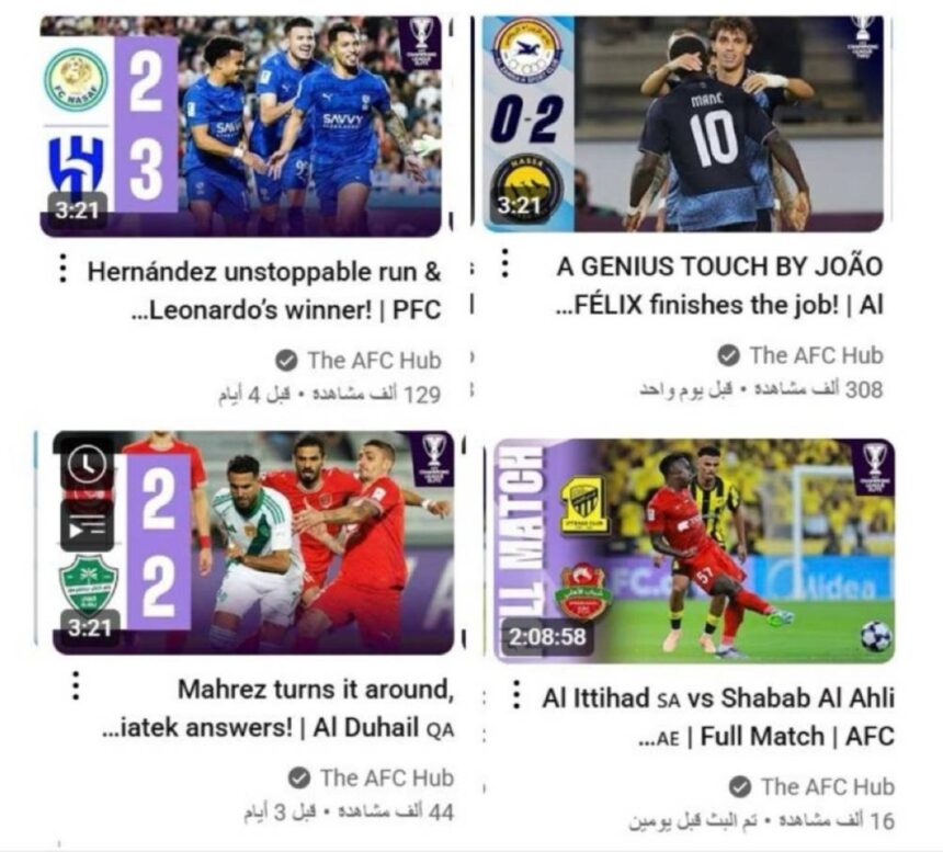 كشفت قناة الاتحاد الآسيوي لكرة القدم عبر منصة يوتيوب تفوقاً لافتاً للنصر في مشاهدات مباريات بطولة «آسيا 2»، حيث حصدت مباراة النصر أمام الزوراء العراقي 308 آلاف مشاهدة خلال 24 ساعة فقط، لتتصدر قائمة المتابعة الرقمية للأندية السعودية.