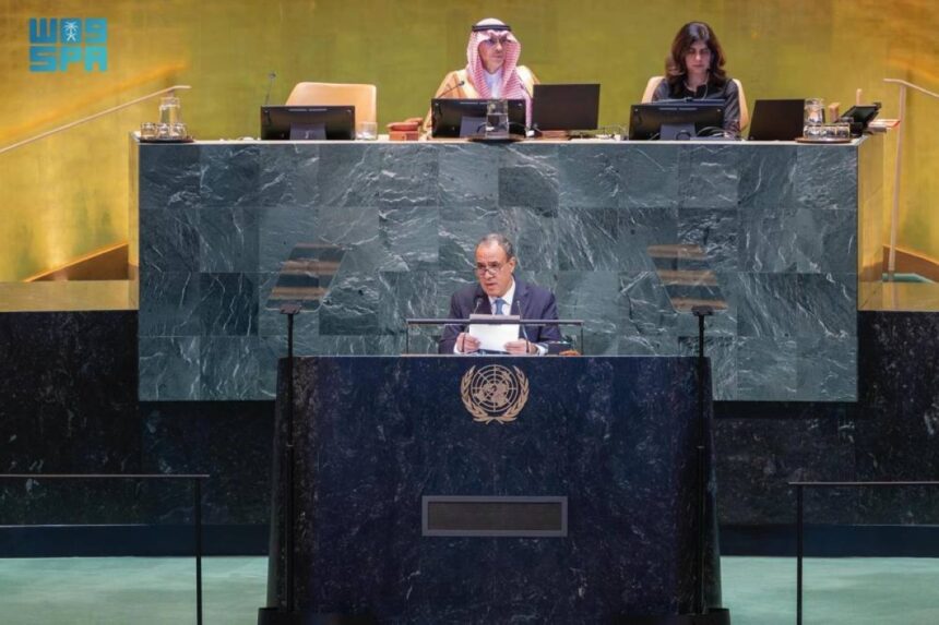رأس المندوب الدائم للمملكة لدى الأمم المتحدة السفير الدكتور عبدالعزيز الواصل، إحدى جلسات اليوم الخامس من أعمال المناقشة العامة رفيعة المستوى للجمعية العامة في دورتها الثمانين بمقر الأمم المتحدة في نيويورك.