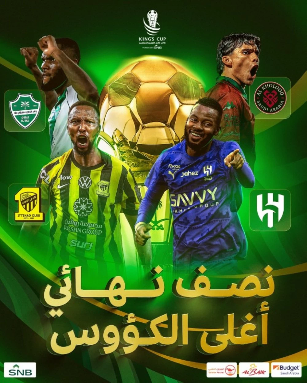The qualification of these four teams was well-deserved, as the quarter-finals saw a total of 23 goals scored in just 4 matches, with one match extending to penalties where Al-Ahli triumphed over Al-Qadisiyah after a 3-3 draw in both regular and extra time. Meanwhile, Al-Khulood defeated their guest Al-Khaleej with a score of 4-3, and Al-Ittihad overcame their guest Al-Shabab with a score of 4-1, while Al-Hilal also won against Al-Fateh with the same score.
