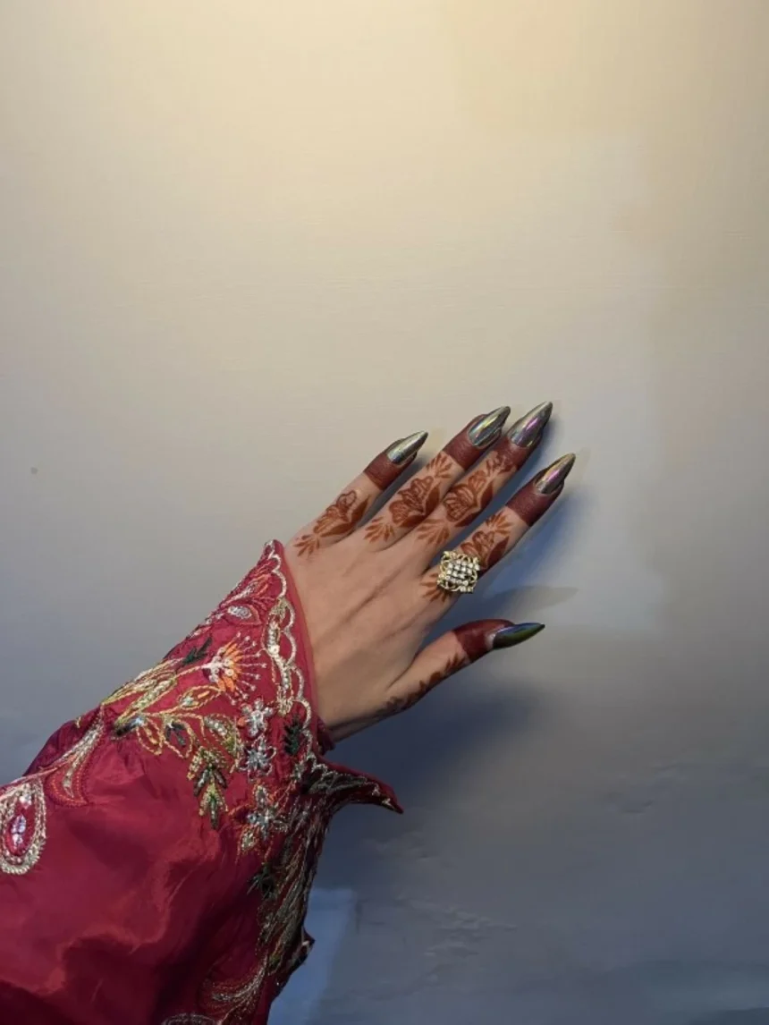 Open rings, finger bracelets, and delicate chains that wrap around the hand have become an elegant alternative that reflects the same decorative feeling of henna designs without any permanent trace.