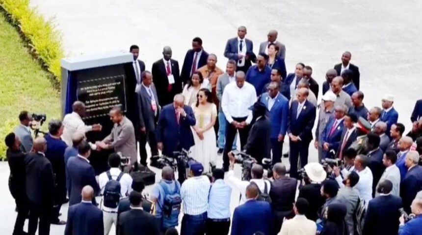 وأعلن آبي أحمد افتتاح السد الذي لا يزال موضوع خلاف بين مصر والسودان من جهة وإثيوبيا من جهة أخرى، مؤكداً أن السد إنجاز عظيم ليس فقط لإثيوبيا.