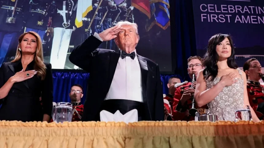 عندما اقتحم رجل مسلح الردهة خارج قاعة عشاء رفيع المستوى للصحفيين كان يحضره ترمب والعديد من كبار القادة، واندفع المسلح نحو قاعة الاحتفالات قبل أن يحاصره عملاء الخدمة السرية ويحتجزوه. ولم يصب الرئيس بأذى وتم نقله بسرعة بعيداً.
