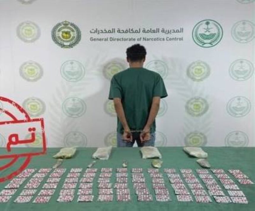 قبضت المديرية العامة لمكافحة المخدرات على مواطن بمنطقة تبوك لترويجه (4.6) كيلوجرامات من مادة الحشيش المخدر و(1,247) قرصاً خاضعاً لتنظيم التداول الطبي، وجرى إيقافه واتخاذ الإجراءات النظامية بحقه، وإحالته إلى النيابة العامة.
