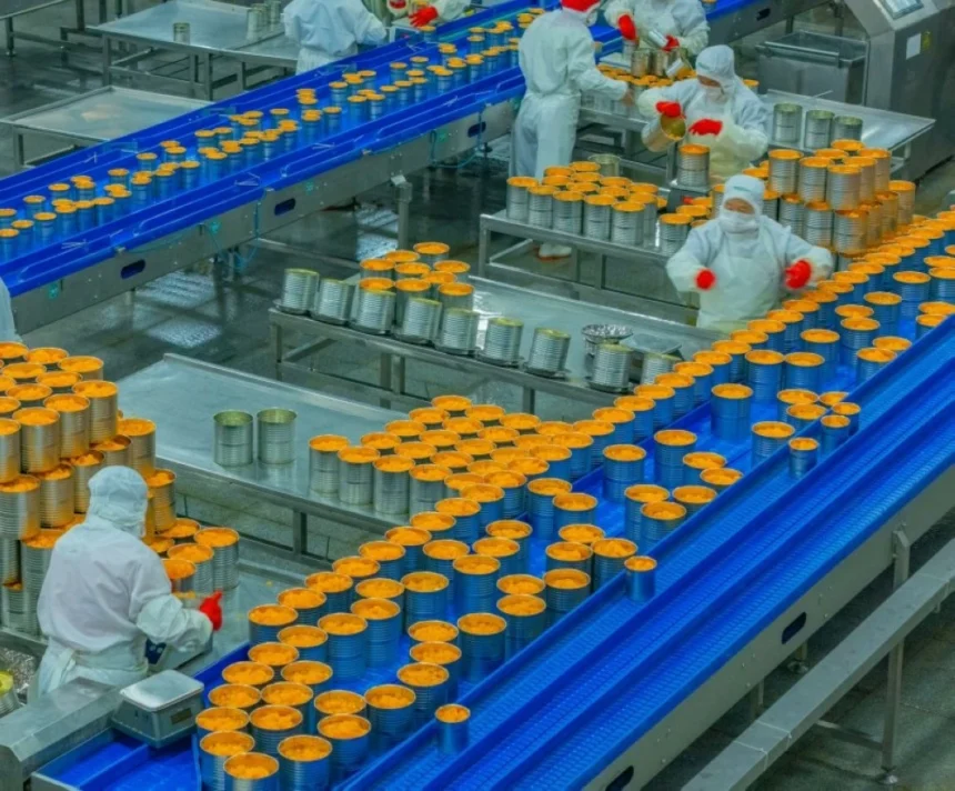 تواصل الشركات المتخصصة في تعليب المنتجات الحمضية أعمالها خلال الفترة الحالية، تزامنا مع ارتفاع الطلب عليها، وتظهر الصورة أحد المعامل في الصين خلال مراحل معالجة البرتقال في معلبات بهدف تصديره إلى 140 دولة (إيكونومي دايلي الصينية).