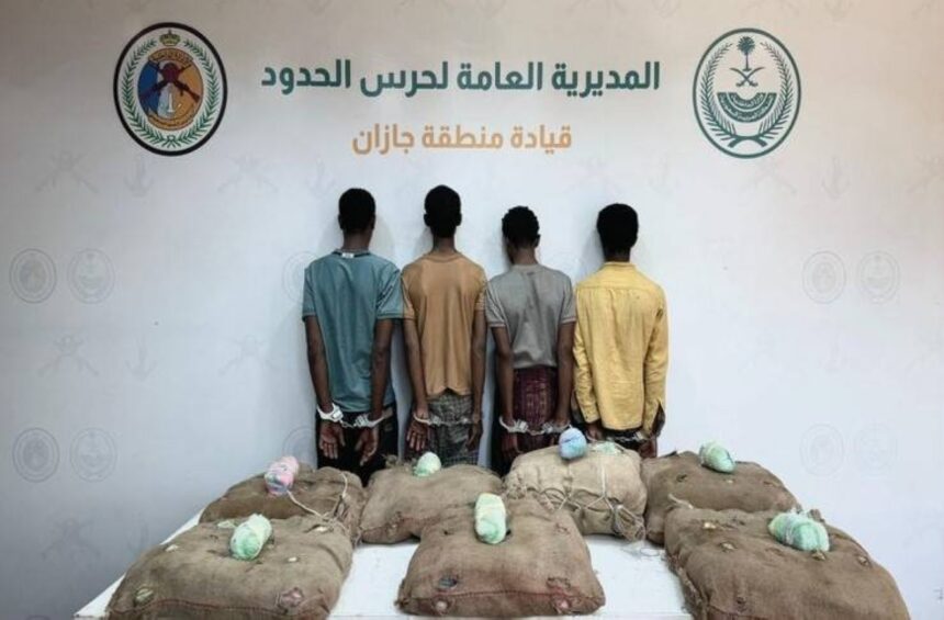 قبضت الدوريات البرية لحرس الحدود في قطاع الدائر بمنطقة جازان على (4) مخالفين لنظام أمن الحدود من الجنسية الإثيوبية، لتهريبهم (140) كيلوغرامًا من نبات القات المخدر، وجرى استكمال الإجراءات النظامية الأولية بحقهم، وتسليمهم والمضبوطات لجهة الاختصاص.