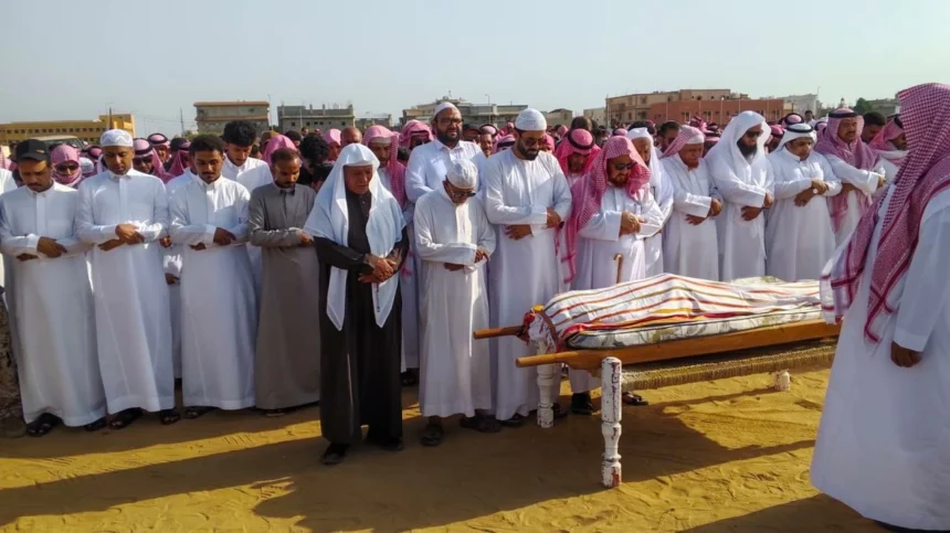 A large crowd attended the funeral of the teacher from the Al-Hadhour School, previously known as Dhif Allah bin Ali Muswak Dhafri Hamdi, to his final resting place in the cemetery of the blessed village belonging to the Al-Tawal Governorate, east of Al-Tawal General Hospital.