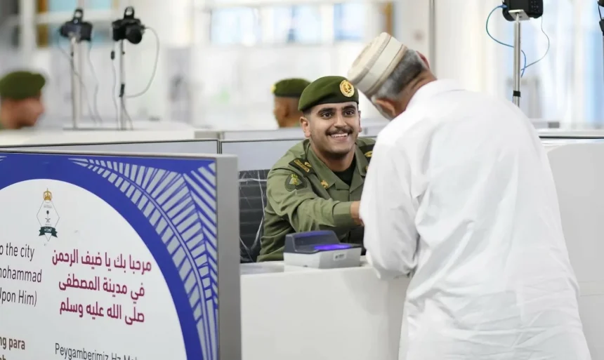 استقبلت الجوازات بمطار الأمير محمد بن عبدالعزيز الدولي بالمدينة المنورة أولى رحلات ضيوف الرحمن من جمهورية باكستان الإسلامية القادمين لأداء فريضة الحج لهذا العام 1447، وأنهت إجراءاتهم بيسر وطمأنينة.