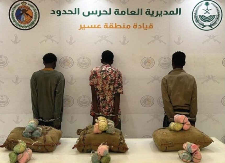 قبضت الدوريات البرية لحرس الحدود في قطاع الربوعة بمنطقة عسير على (3) مخالفين لنظام أمن الحدود من الجنسية الإثيوبية، لتهريبهم (45) كيلوغراماً من نبات القات المخدر، واستكملت بحقهم الإجراءات النظامية الأولية، وتسليمهم والمضبوطات لجهة الاختصاص.