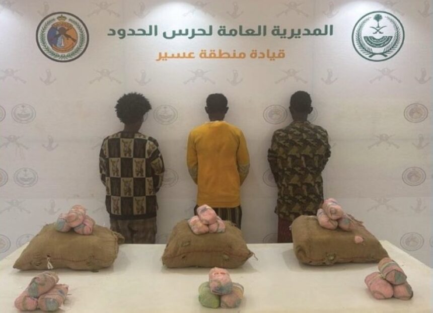 قبضت الدوريات البرية لحرس الحدود في قطاع الربوعة بمنطقة عسير على (3) مخالفين لنظام أمن الحدود من الجنسية الإثيوبية، لتهريبهم (45) كيلوغراماً من نبات القات المخدر، وجرى استكمال الإجراءات النظامية الأولية بحقهم، وتسليمهم والمضبوطات لجهة الاختصاص.