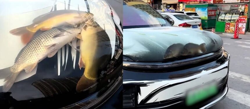 في مدينة لياونينغ الصينية أثار رجل جدلاً واسعاً بعد أن حول غطاء محرك سيارته إلى حوض مائي شفاف وضع فيه الأسماك والسرطانات البحرية في مشهد غريب جذب أنظار المارة.
