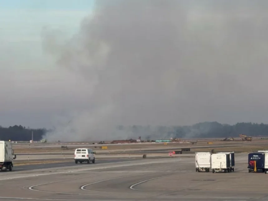 نُشرت صور وفيديوهات على موقع «X» تُظهر تصاعد دخان كثيف قرب المدرج في مطار دالاس، الذي يبعد نحو 40 كيلومتراً عن واشنطن العاصمة، ويُعد أقرب مطار دولي لها.