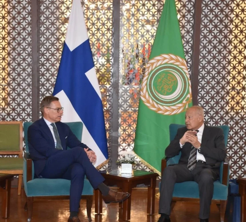 وأكد الرئيس ألكسندر ستوب حرص جمهورية فنلندا على تطوير علاقاتها مع الدول العربية ومع جامعة الدول العربية بوصفها المنظمة الإقليمية الجامعة، مشيداً بالدور المحوري الذي تضطلع به الجامعة في معالجة قضايا المنطقة والدفع نحو الحلول السياسية لأزماتها، وأعرب عن قلق بلاده البالغ إزاء الأوضاع الإنسانية في قطاع غزة.