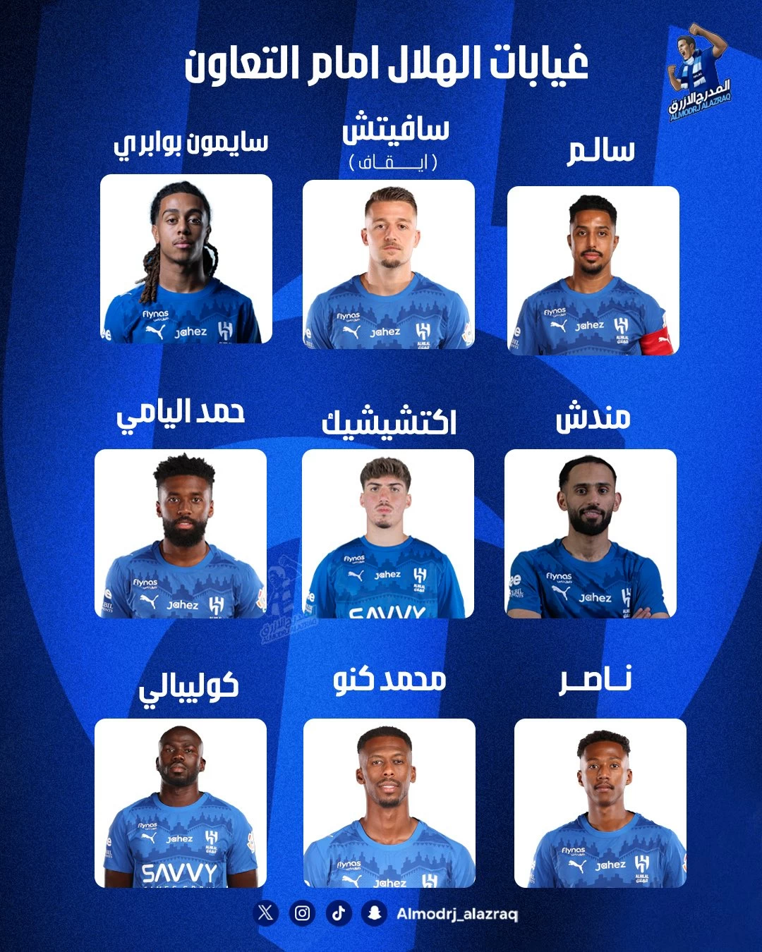 كشف «الرئيس السابق لنادي الهلال» الأمير عبدالرحمن بن مساعد عدد اللاعبين الذين سيغيبون عن مواجهة التعاون غداً (السبت) في مباراة الجولة الـ27 من دوري روشن السعودي التي ستُقام على ملعب المملكة أرينا، وقال عبر حسابه الرسمي في منصة التواصل الاجتماعي «X»: «هذه غيابات الهلال أمام التعاون غدا السبت في الدوري، وكما هو موضح سالم الدوسري الذين شككوا في إصابته وأكدوا تلميحًا أو تصريحًا بأنه يدّعيها ها هو يغيب بسبب الإصابة في مباراة مهمة وقوية نتيجتها ربما تحدد مسار الدوري، شفاه الله وعافاه هو وجميع المصابين في كل الأندية».