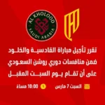 تأجيل مواجهة الخلود والقادسية 48 ساعة – أخبار السعودية – ن والقلم