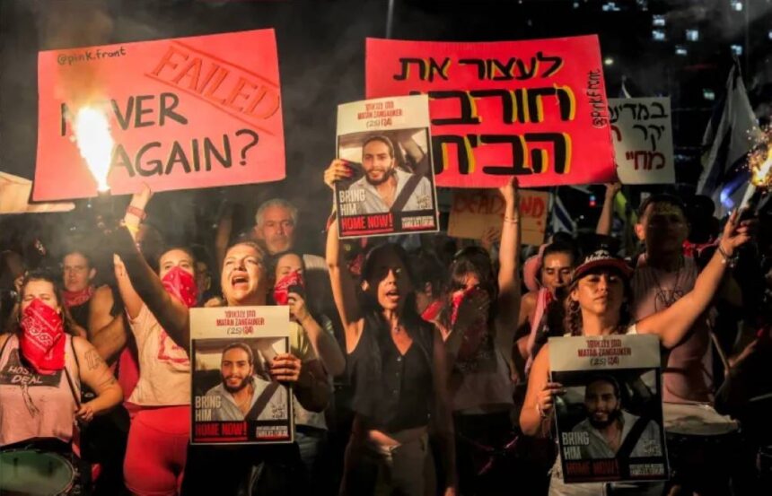 في الوقت ذاته، احتشد متظاهرون إسرائيليون أمام وزارة الدفاع في تل أبيب، مطالبين الحكومة بعدم تنفيذ عمليات عسكرية في المناطق التي يُشتبه بوجود الأسرى الإسرائيليين فيها داخل قطاع غزة.