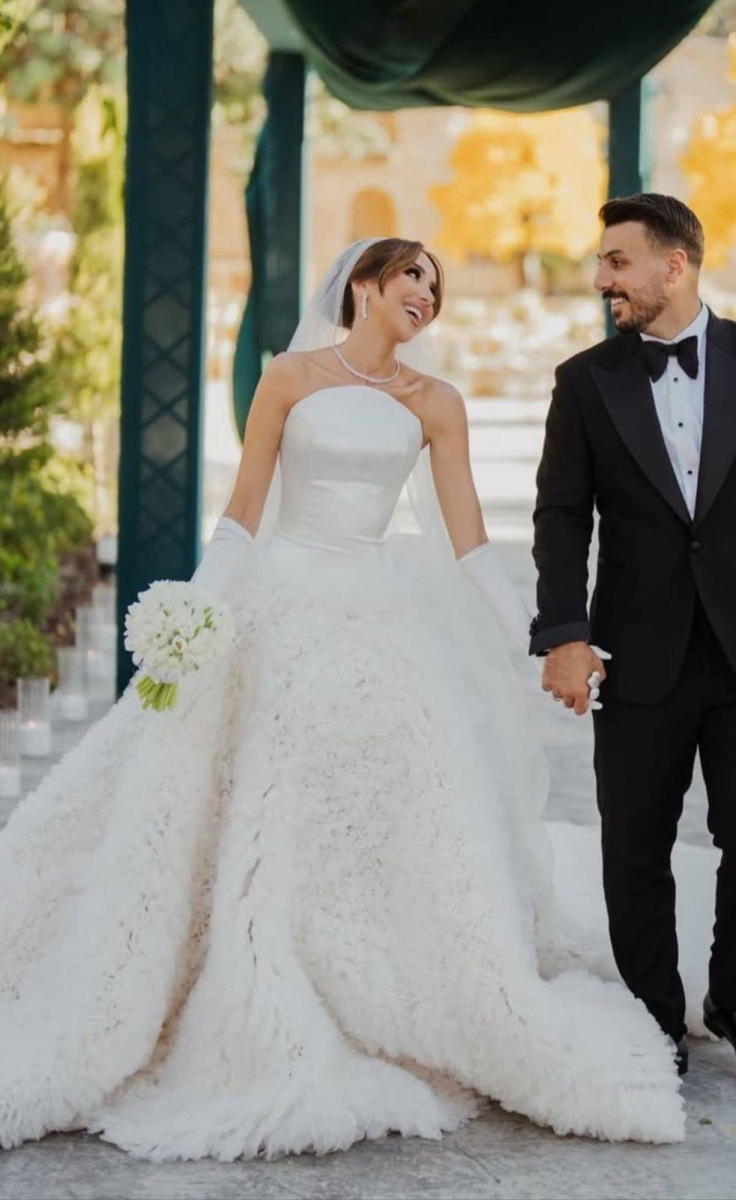 وقد حمل الفستان تصميماً كلاسيكياً أنيقاً صُمم قبل سبعة عشر عاماً وأصبح أيقونة في عالم الموضة، حيث تميز بتفاصيل دقيقة ولمسات فاخرة تناسب حفلات الزفاف الرسمية.
