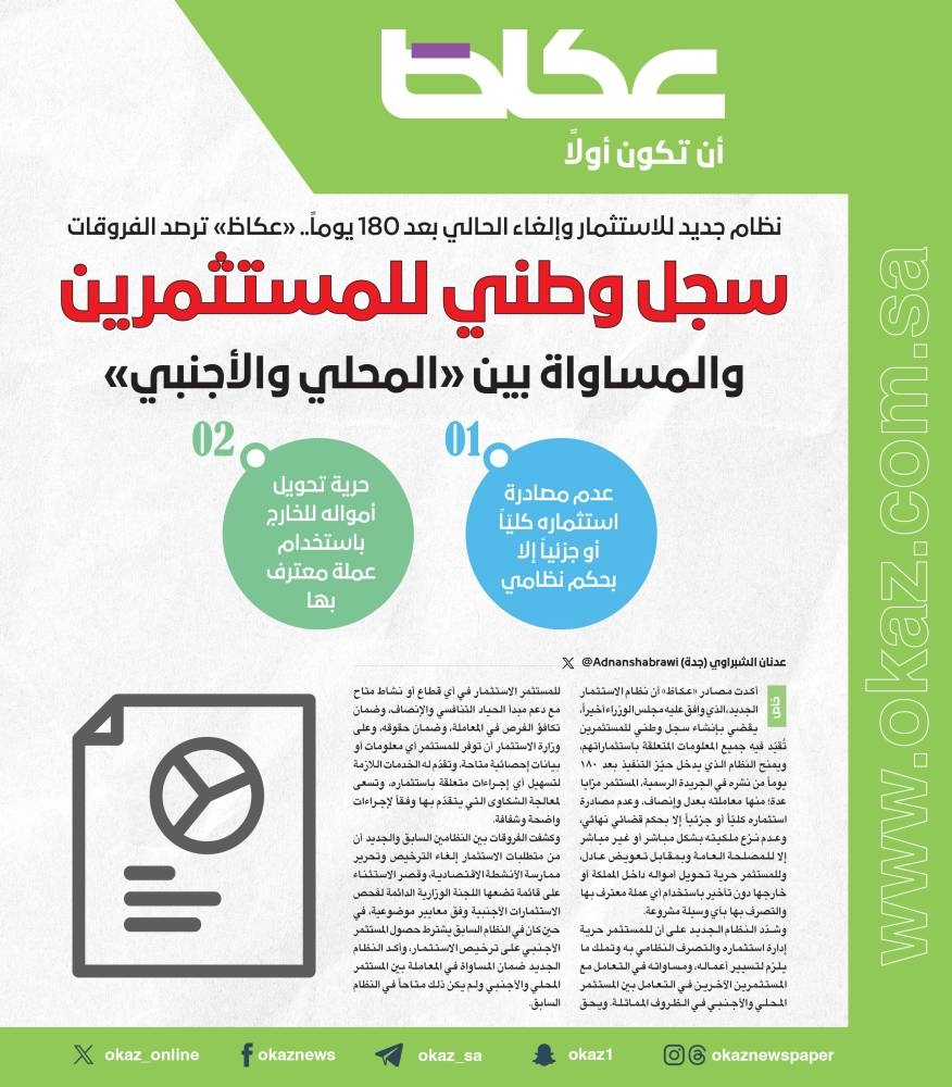 Reading: سجل وطني للمستثمرين والمساواة في المعاملة بين «المحلي والأجنبي» – أخبار السعودية – ن والقلم
