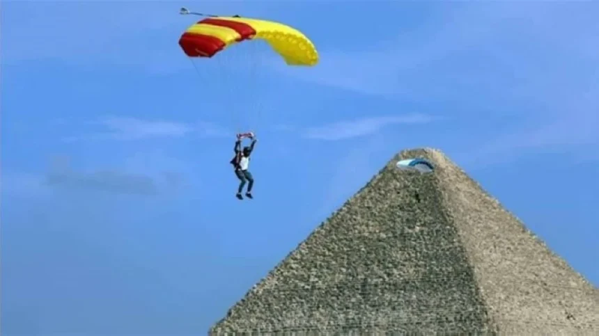 In a humorous incident that caused a wide stir on social media, three Brazilian tourists who were participating in a sports tourism event for skydiving over the archaeological area of the pyramids landed in the “Kabaish” area of the Faisal neighborhood in Giza, Egypt.