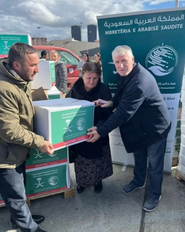 The King Salman Humanitarian Aid and Relief Center distributed (300) food baskets in the city of Ferizaj in the Republic of Kosovo, benefiting (1,500) individuals from (300) families, as part of the “Feeding Basket 5” project in Kosovo for the year 2026.