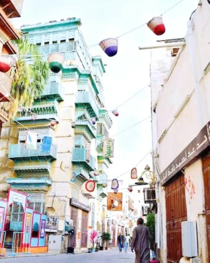 The Alawi market extends from Qabil Street to the Bedouin market, serving as a gathering point for most traders, with many commercial houses, and it was a route that welcomed the ships of pilgrims docking at the old Jeddah port for hundreds of years, taking them through the pilgrimage path and the narrow alleys lined with wooden mashrabiyas.