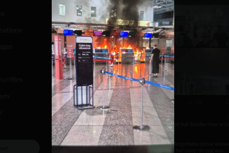 وبحسب وسائل إعلام محلية، كان الشاب قد أثار الفوضى قبل الحادثة بدقائق حين بدأ بشتم موظفي المطار في منطقة تسجيل الوصول، ثم أخرج مطرقة وحطّم شاشات عرض الرحلات القادمة والمغادرة، قبل أن يشعل النيران.