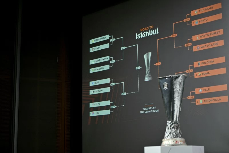 The winner of Stuttgart vs. Porto will meet the winner of Nottingham Forest vs. Midtjylland, while the winner of Bologna vs. Roma will play against the winner of Lille vs. Aston Villa, with two teams from these eight clubs advancing to face each other in the semi-finals.