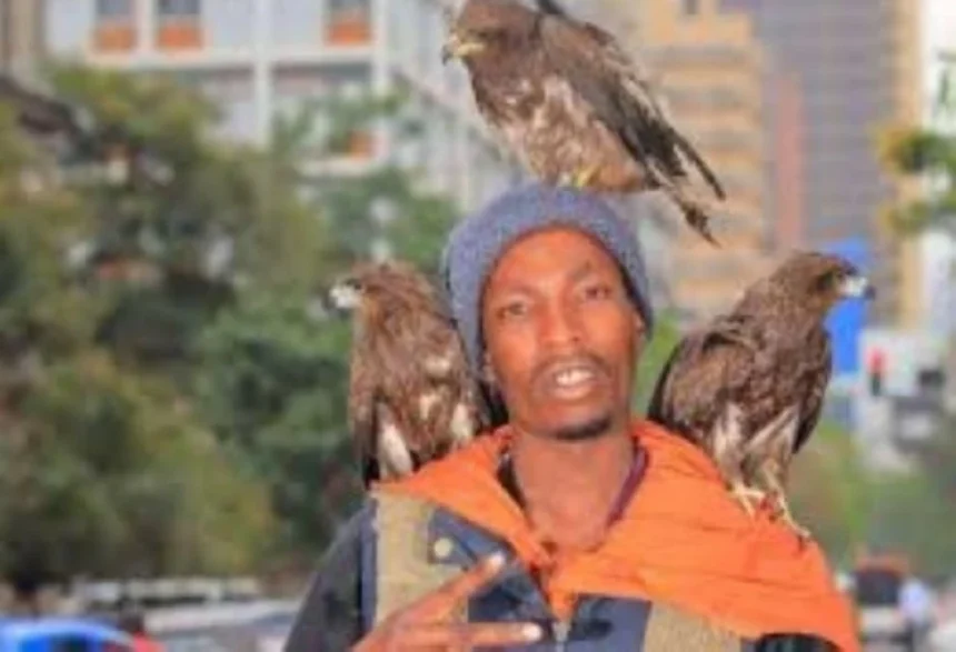 In the crowded streets of Nairobi, a slender young man walks while birds of prey confidently perch on his head and shoulders. The scene resembles a cinematic shot, but it is a reality that Rogers Olu Maguta lives daily, having transformed from a homeless person to an environmental icon known to millions as the “Birdman of Nairobi.”