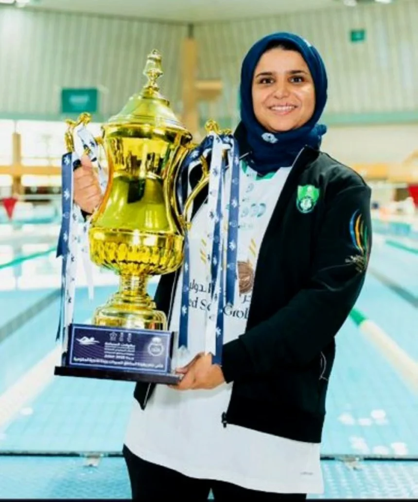 •• Ghania Al-Sheikhi is an international rescue trainer, swimming coach, lifesaving sports trainer, international judge in lifesaving sports, and a marine media trainer with a diploma in the fundamentals of maritime navigation, which includes charts and navigational tools, route planning, marine measurements, safety and rescue, emergency response, maneuvers and operations, and maritime collision law. She is certified by the Technical and Vocational Training Corporation and holds a certificate from the American-Canadian Board. My attachment to the pool began in childhood when my father took me swimming at the Khuzam International Pool at the age of seven, and from there, my love for swimming and strong attachment to it began.