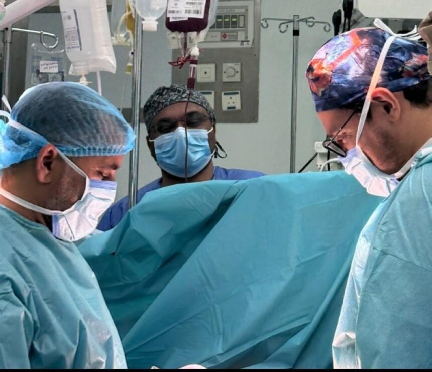 وبشكل عاجل، أُجري تدخل جراحي طارئ لاستكشاف الصدر والقلب، حيث تبين وجود إصابة نافذة في عضلة البطين الأيسر بطول 5 سم، إلى جانب تهتك في الرئة اليسرى وكسر في أحد الأضلاع. وتمكن الفريق من السيطرة على النزيف، وإصلاح القلب والرئة، وتثبيت الكسر باستخدام شريحة من التيتانيوم.